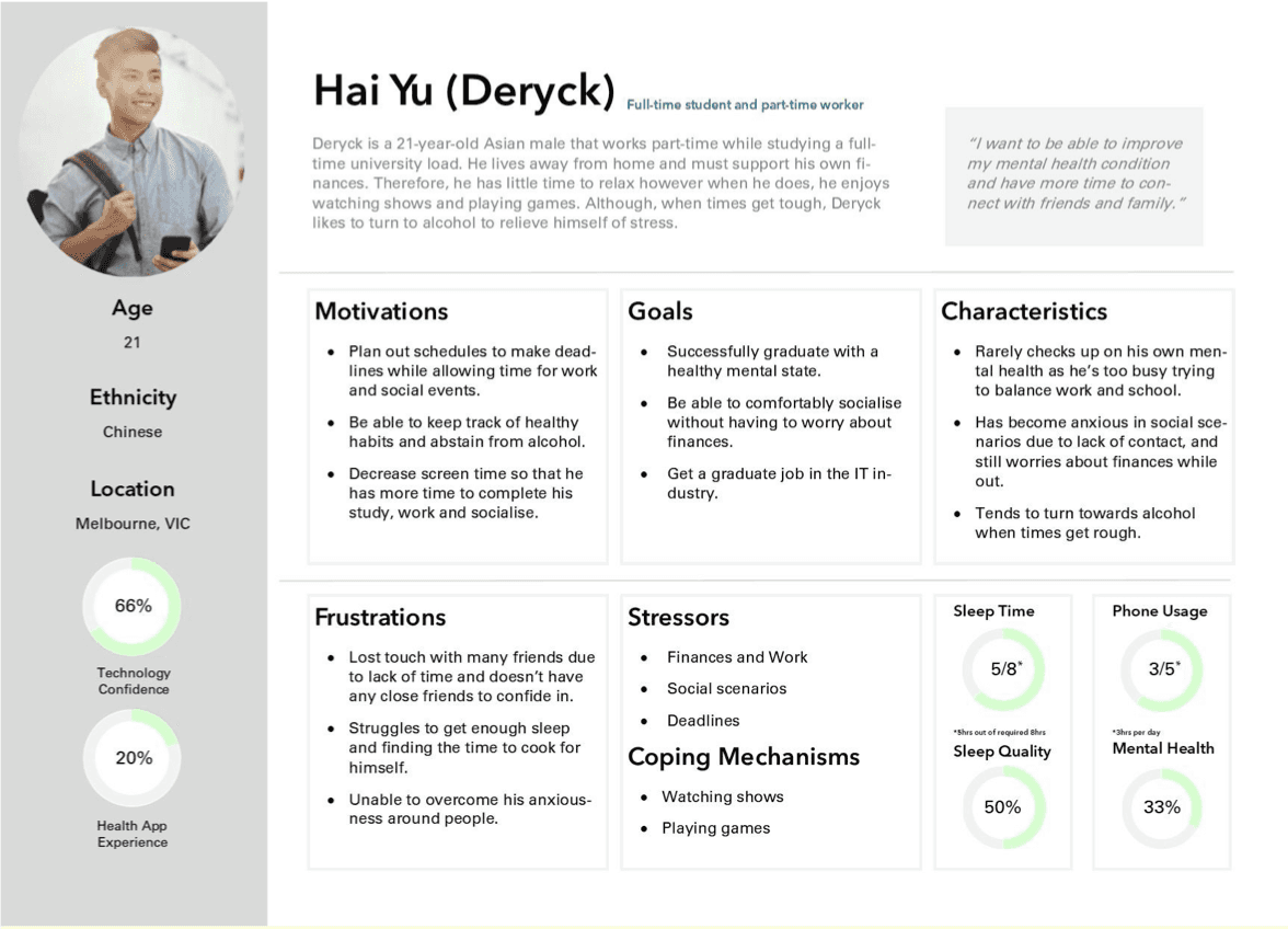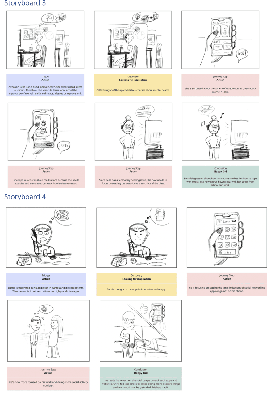 Our initial low-fidelity prototypes revealed various usability and functionality gaps that could potentially hinder user engagement and effectiveness, without feeling overwhelmed by the complexity of the app interface. Additionally, the initial designs lacked sufficient functionality like sleep tracker. To truly engage users in their mental health journey.