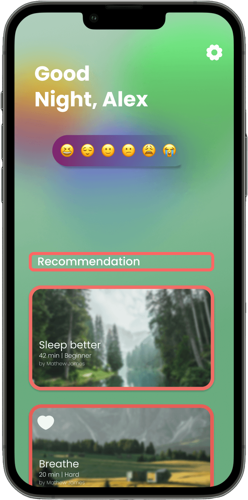 Our review of competitor apps showed many lacked engaging, interactive mental health resources. Inspired by the success of digital giants like Netflix and Spotify in personalizing user experiences, we adopted a dynamic content carousel format for our app.